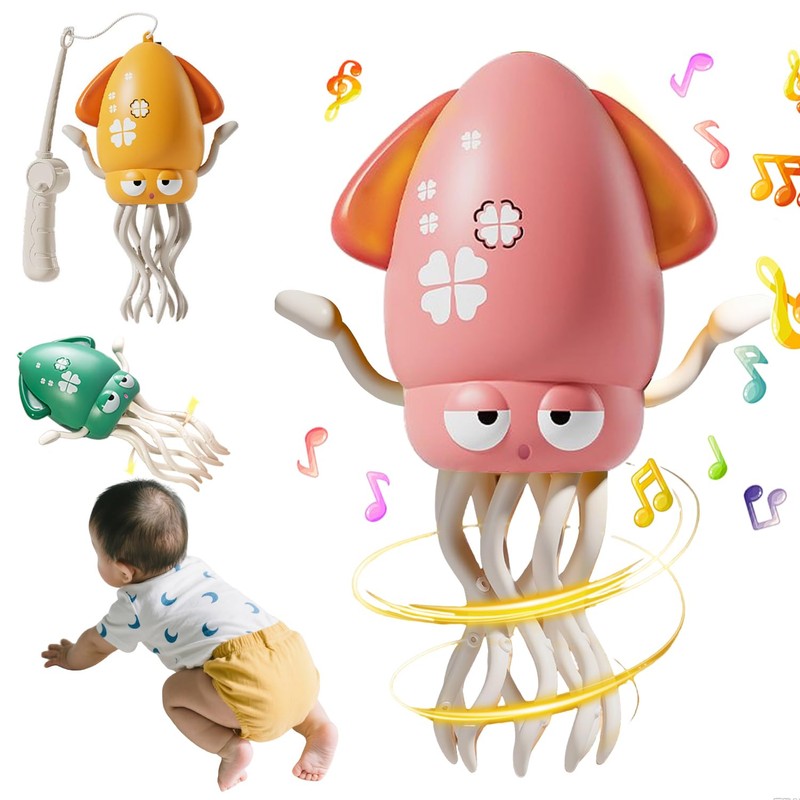 - 🐙 2-in-1 Play Modes – Walk & Dance!-Dancing Mode: The octopus wiggles its tentacles and flaps its fins while standing upright.Walking Mode: Place it down, and it automatically crawls forward—great for encouraging toddlers to chase and explore!