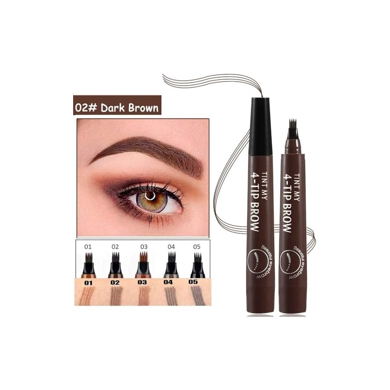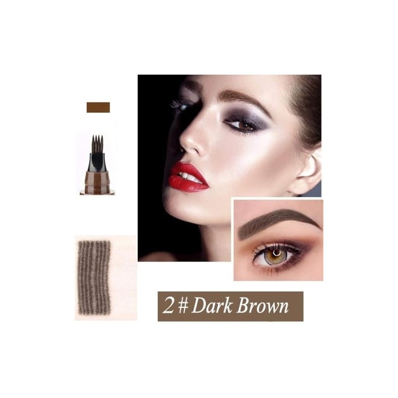 Magic Eyebrow Pencil, 3D Magic Microblading Waterproof Brow Pen with 4 Micro-Fork Tip, Long lasting Makeup Eyebrow Pencil Fine Stroke Natural Gap Filling Eyebrow(2PCS) (02#Dark Brown)