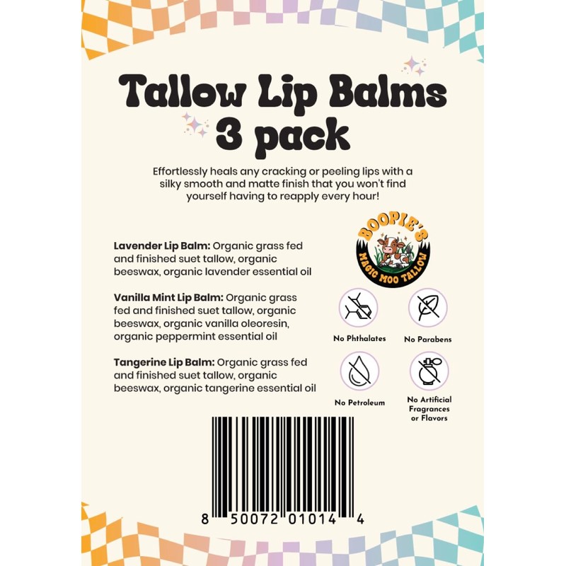 Magic Moo Tallow Lip Balm 3pk hydrating & nourishing for dry & cracked lips