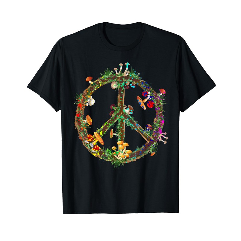 - If you're feeling extra groovy and crazy , get this magical mushroom peace sign graphic design . It's an instant throwback to the carefree decade of the 60s and 70s when drugs , rock and roll and free love ruled.