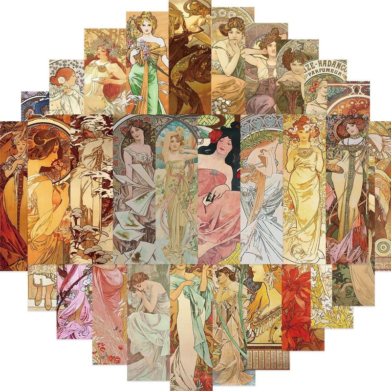 [Magic of Sedona] Alphonse Mucha Bookmark Set, Set of 30, Art Nouveau Style Bookmarks | High Quality White Card Paper, Waterproof, UV Treatment, 1.6 x 5.9 inches (4 x 15 cm), Bookmark Bookmark