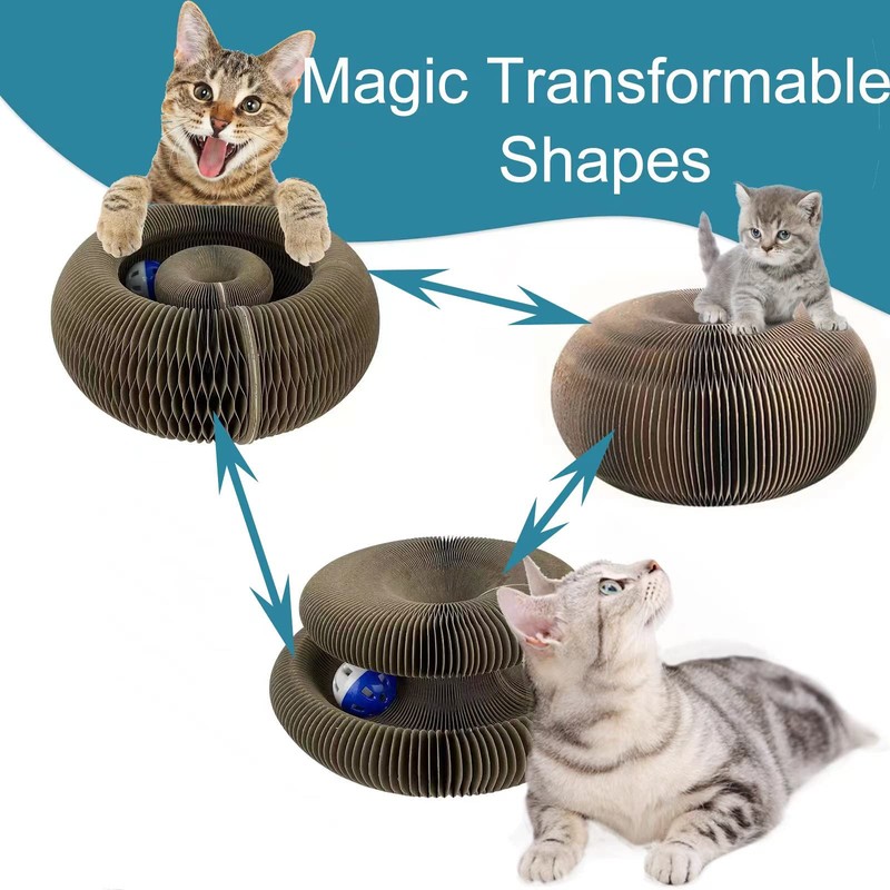 Magic Organ Katzenkratzbrett Recycelbares Katzenspielzeug Akkordeon Rund kommt mit einem Spielzeugglockenball, Katzenstratcher Schleifklaue MultiForm Tunnel Pad Interaktiv Faltbar für Kätzchen &