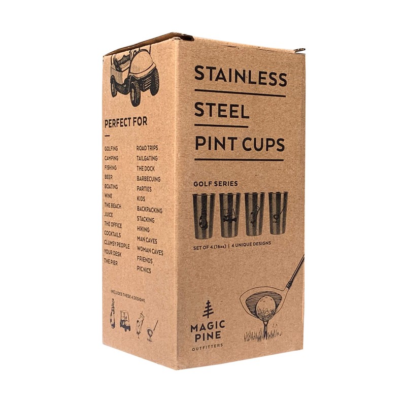 Magic Pine Stainless Pint Cups, Golf (Set of 4)
