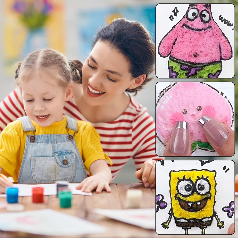 - 4. Complete set with precision: 16 x magic canvas sponge (11 x 7 cm), 12 x puffy paint pens with double tips, 3 x applicators 15.5 cm (fine/medium/large), 1 x bear pattern template for instant start