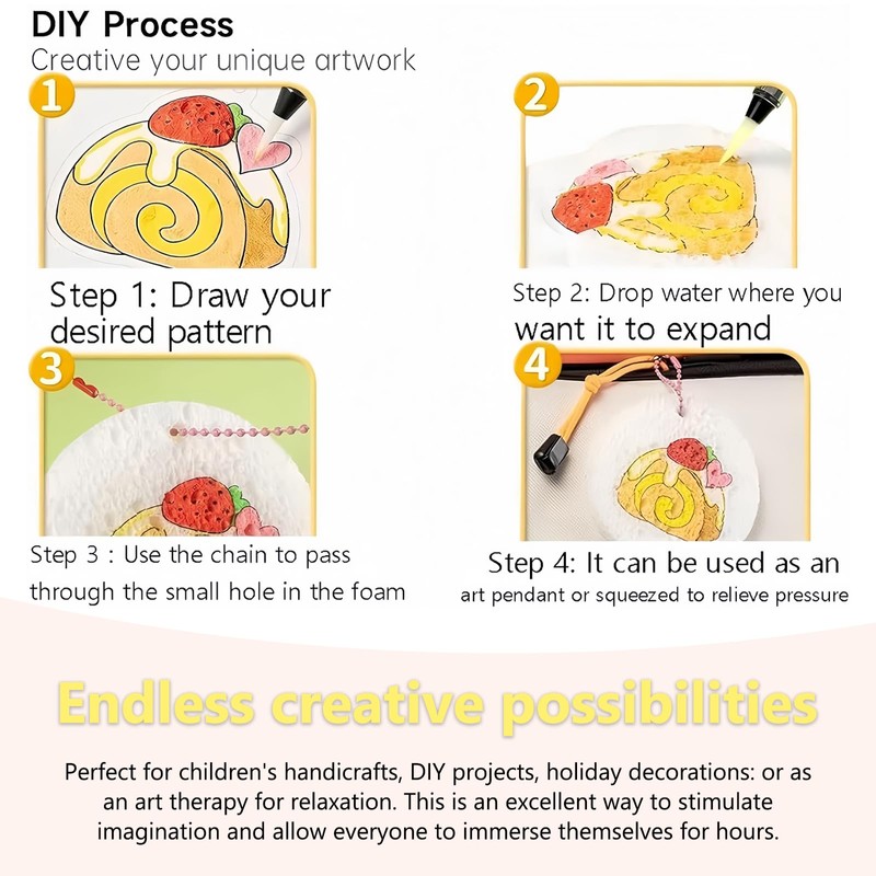 Simply draw on the paper and watch your designs magically puff up when activated with water! This innovative foam material expands with moisture, adding a fun 3D effect to your artwork.