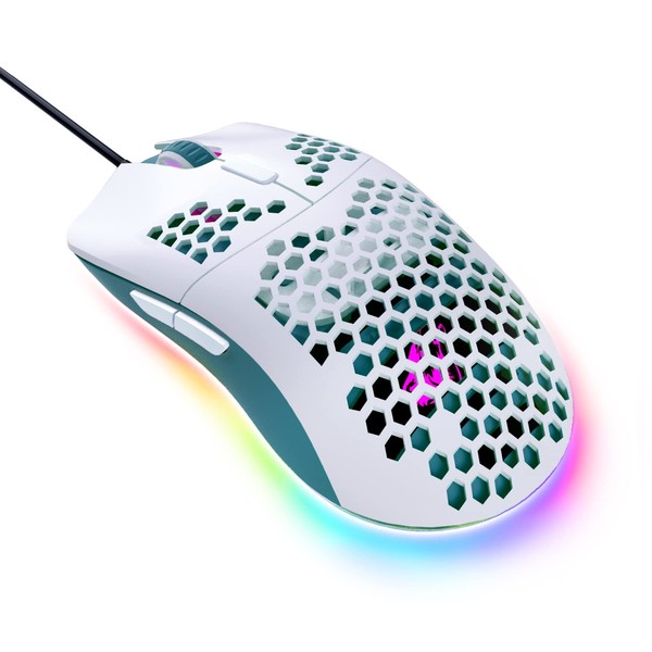 This M1 gaming mouse uses a honeycomb shell that weighs only 69 grams, which is light but still durable, coupled with a polling rate of up to 1000 Hz, an adjustable resolution of 6400 DPI, and an ultra-light braided cord. It runs fast and smoothly. The brilliant RGB color modes provide users fancy gaming environment and highlight the game atmosphere. Born for gaming.