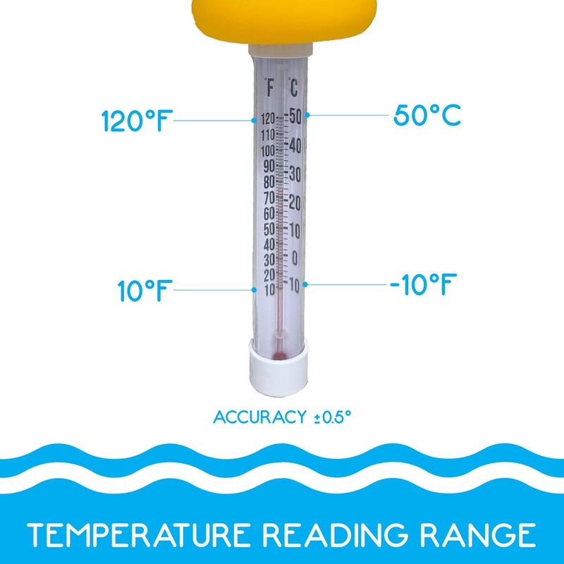 • DURABLE & WEATHER-RESISTANT BUILD: Constructed from waterproof materials that are resistant to sun, rain, and pool chemicals, making it the ideal thermometer for enduring long seasons in outdoor pools, spas, or hot tubs.