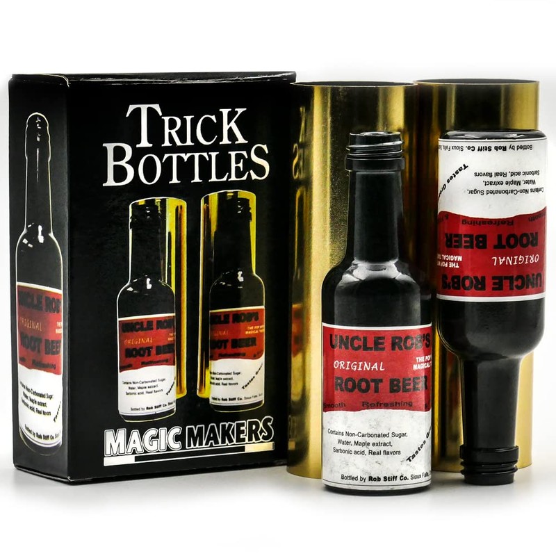 This interactive effect keeps spectators guessing if the bottle is right side up or upside down in a unique game of copycat.