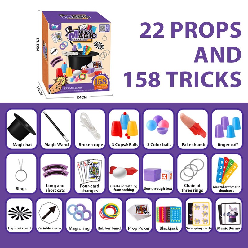 • 🎉 Perfect Gift for Young Magicians – A must-have for birthdays, Christmas, parties, and special occasions. This magic kit is an exciting gift for kids, inspiring wonder and joy while introducing them to the enchanting world of magic!