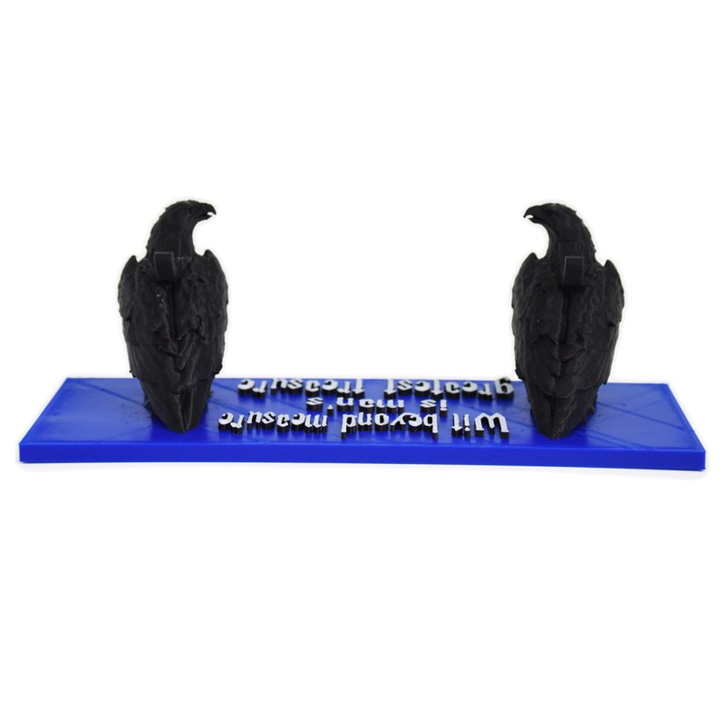 Our wand holder stand is both functional and aesthetically pleasing. 3D printed and hand-painted, features two majestic eagles. The stand measures approximately 18cm x 6cm x 6cm (7" x 2.4" x 2.4"), making it a perfect size for displaying on shelves, desks, or altars.