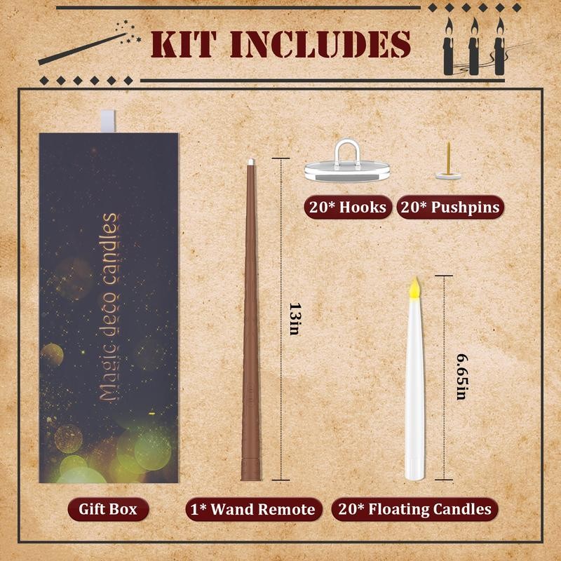 Magic Wand Remote Floating Candles - Enchanted 12-Pack Gift Set for Christmas, Halloween Decor & Party Favors:_12 PACK-Multicolor