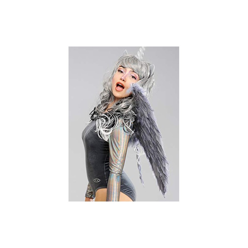 Magical Unicorn Grey Feather Angel Wings