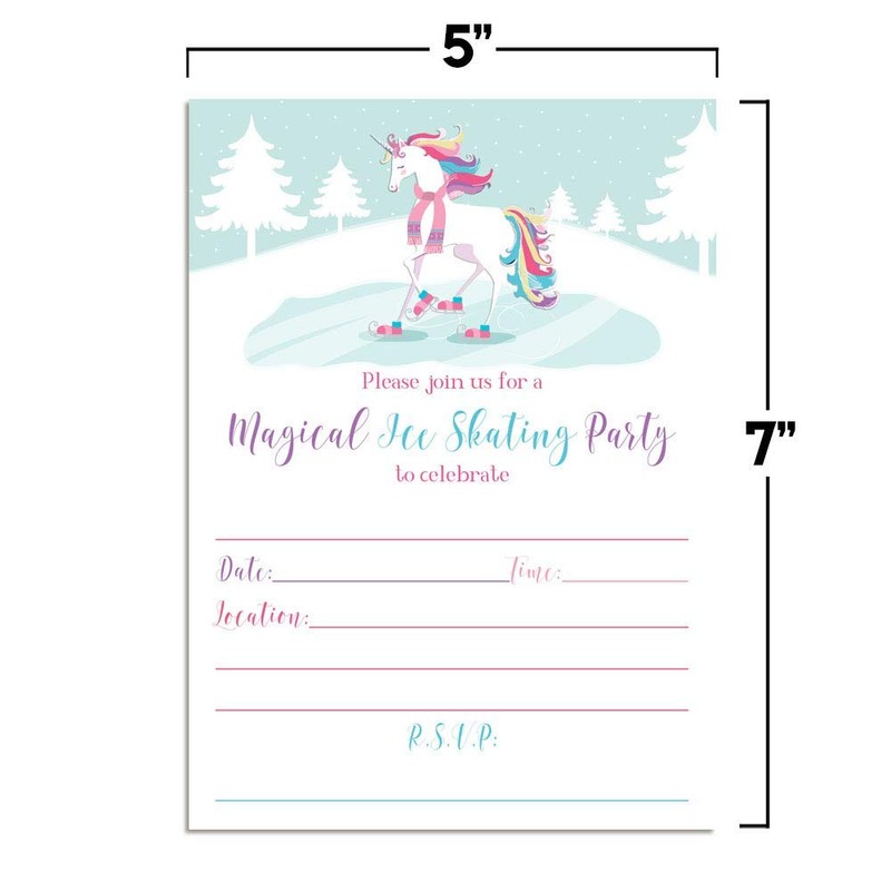 Magical Unicorn Ice Skating Thank You Notes for Kids, Ten 4" x 5.5" Fill In The Blank Cards with 10 White Envelopes by AmandaCreation