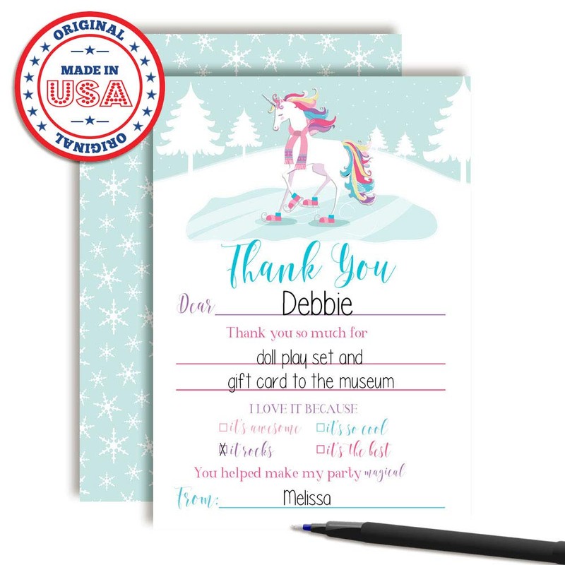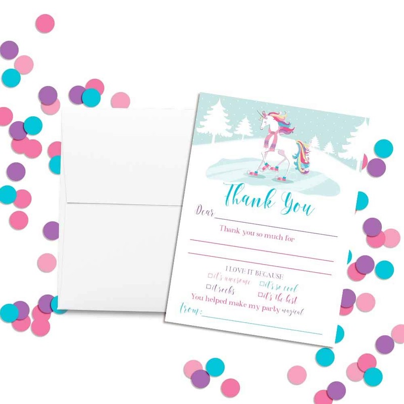 Magical Unicorn Ice Skating Thank You Notes for Kids, Ten 4" x 5.5" Fill In T...