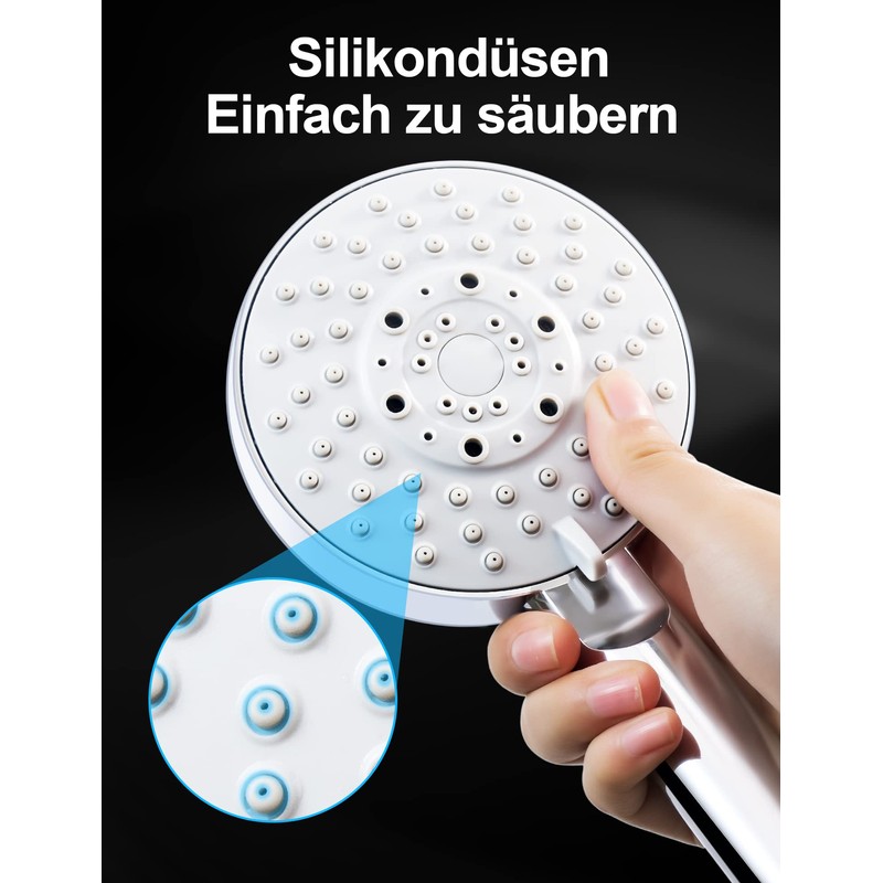 - EASY INSTALLATION & CLEANING This shower head and hose are easy to install without tools, both are universal standard size. The silicone nozzle is designed to not clog the outlet and is easy to clean, which is especially suitable for areas with hard water. You can easily remove the limescale by simply wiping the nozzles with your hand or a brush.