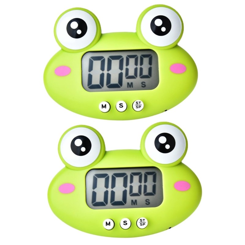 MAGICLULU 2pcs Cartoon Frog Electronic Timer Kitchen Countdown Clock Manager for Study Display Adorable Design for Baking and Cooking Tasks