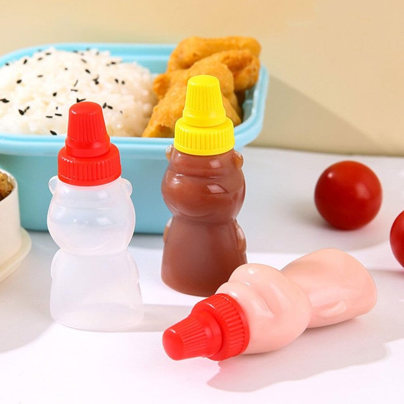 - 👍👍👍【Liquids Oil Bottles】---the lids on these mini bear-shaped sauce bottles make it easy to identify different sauces, can quickly find the one youre looking for. easily pick up and squeeze out the sauce with one hand. the mini ketchup squeeze bottles are children and adults to carry to school or outdoors.