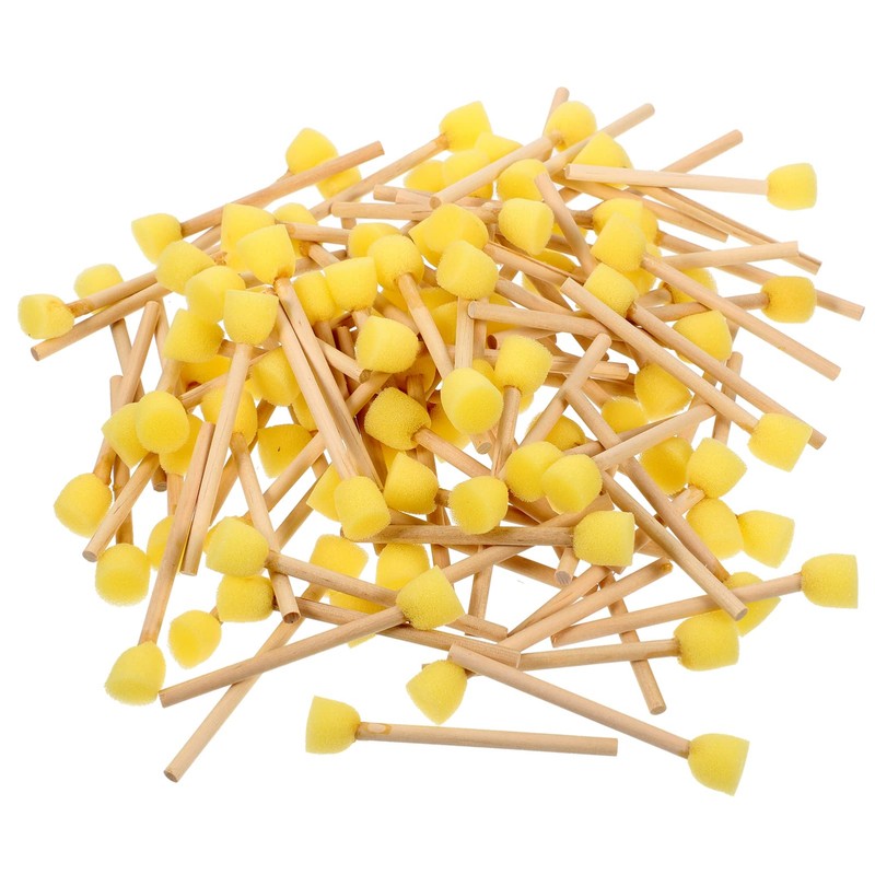 MAGICLULU Sponge Brush 100Pcs Yellow Foam with Wooden Handle Round Sponge Foam Set for Acrylic Painting Foam Brush Round Sponge Brush