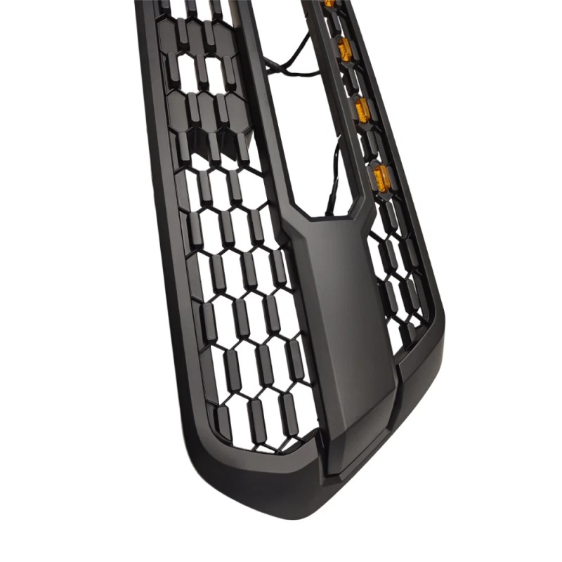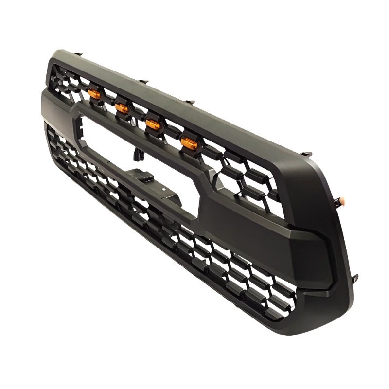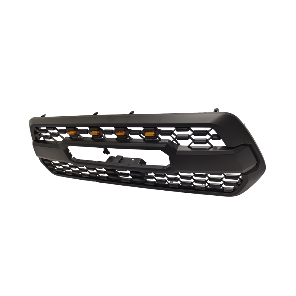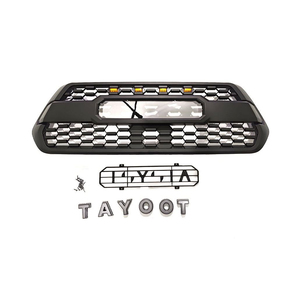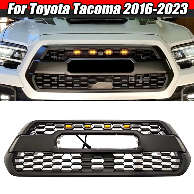 Matte Black Mesh Style Replacement Front Hood Bumper Grille, Upper, Center, Radiator Grille With 4pcs LED Lights For Toyota Tacoma 2016-2023