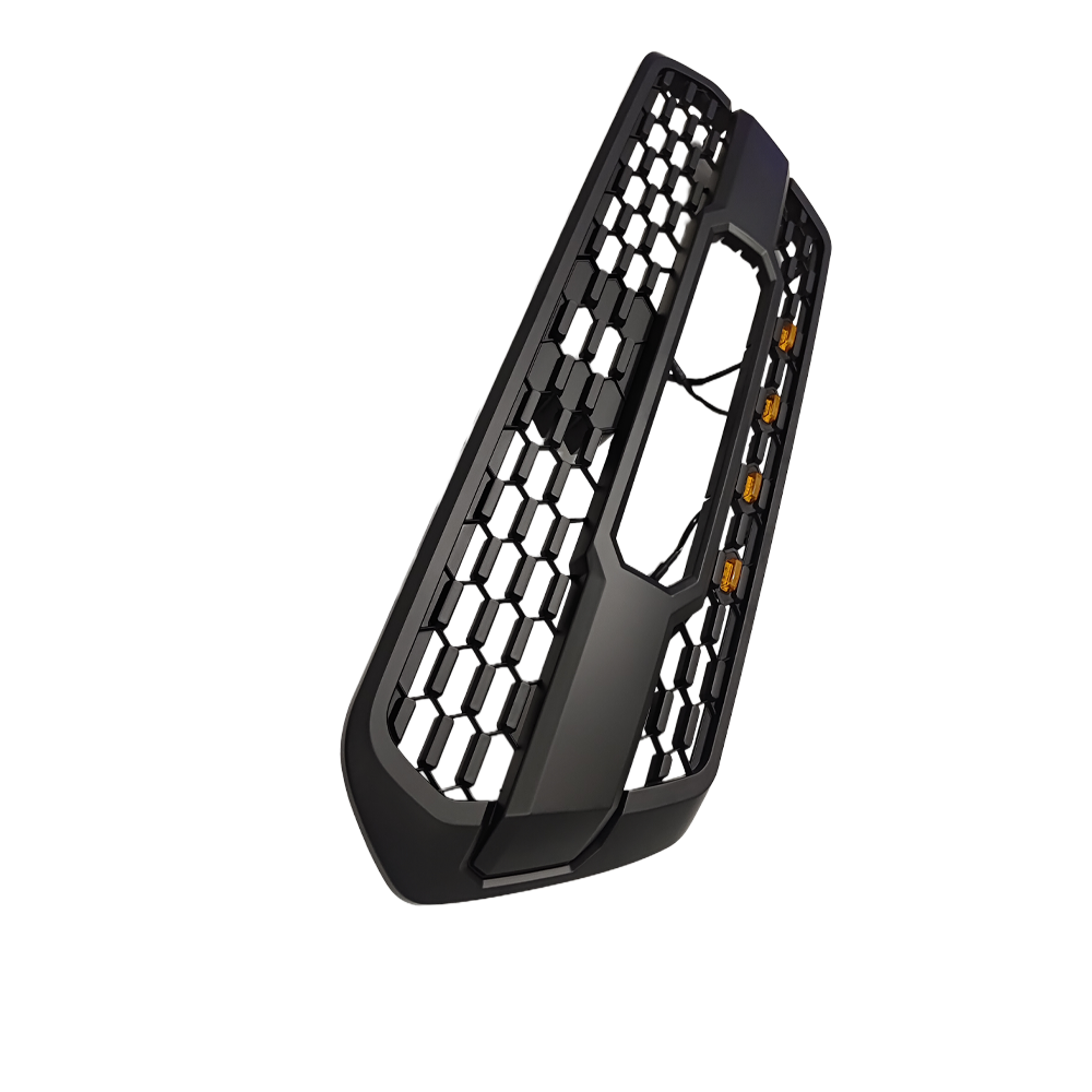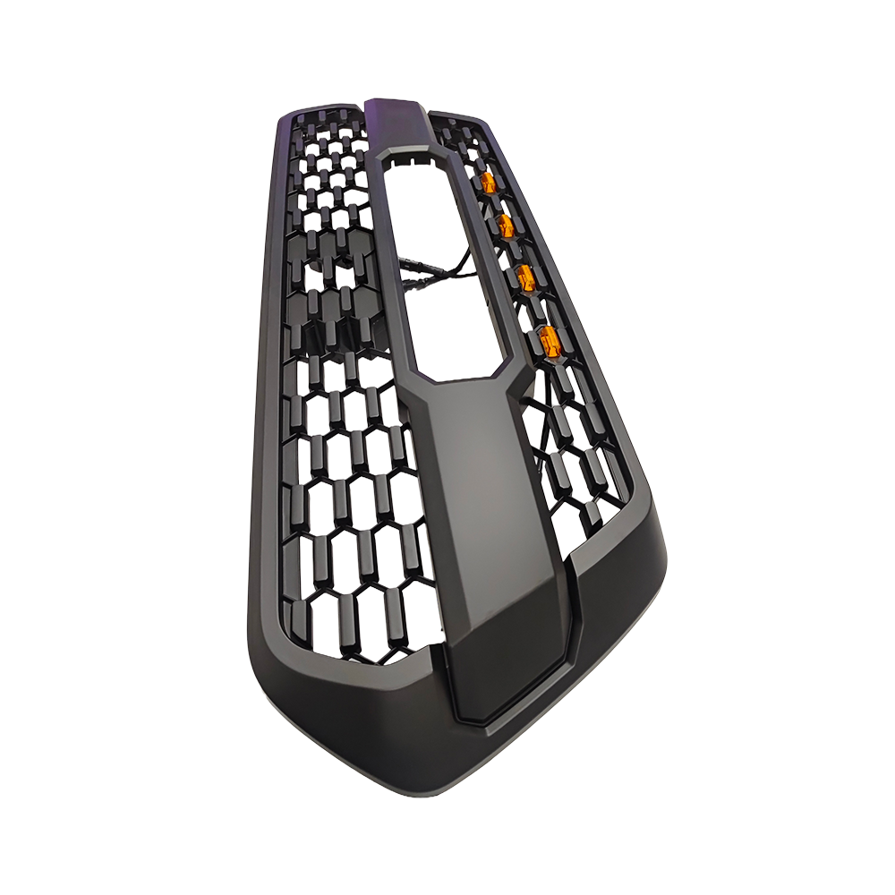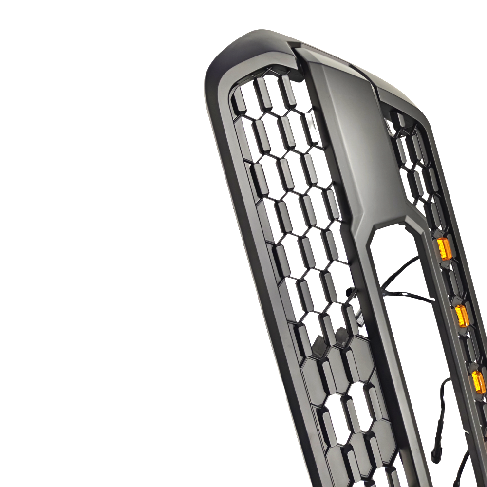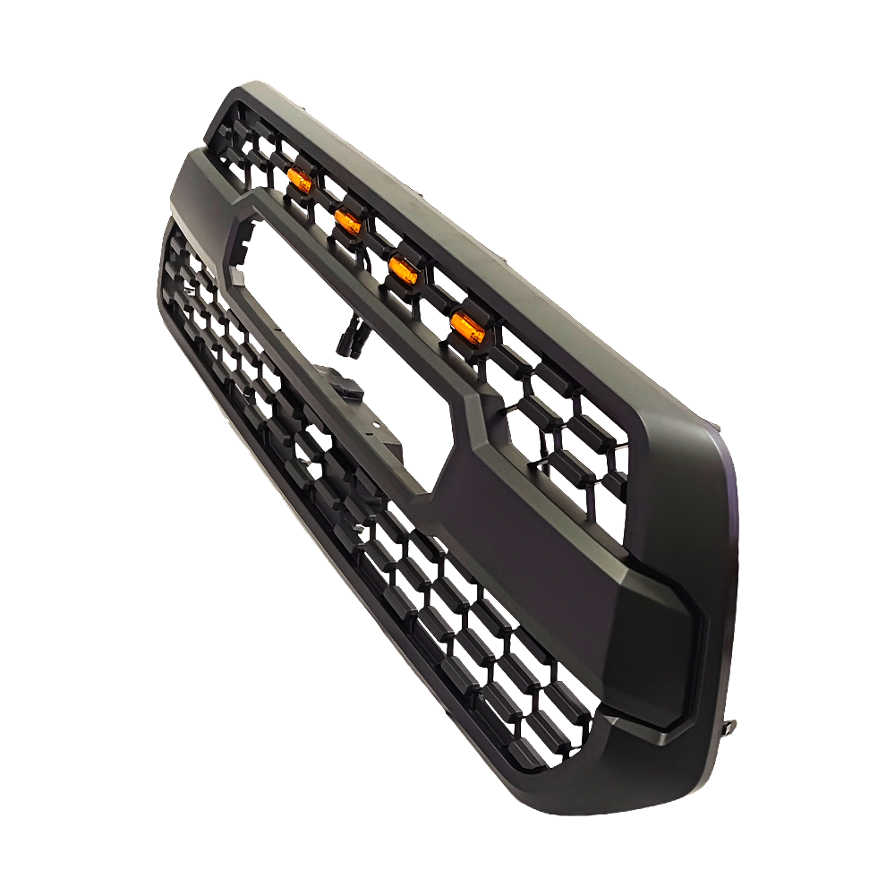 Matte Black Mesh Style Replacement Front Hood Bumper Grille, Upper, Center, Radiator Grille With 4pcs LED Lights For Toyota Tacoma 2016-2023