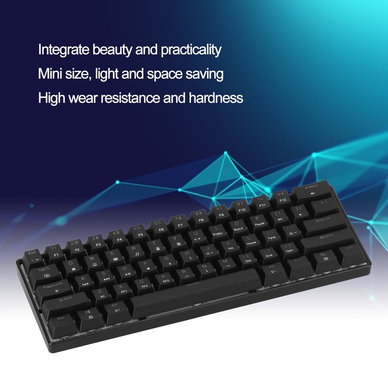 1、Use FN+ related buttons to quickly access homepage, music, email, etc. The symbols engraved on the side of the buttons can help you understand the FN button combination functions. 2、Floating height ergonomic button design, long-term use without fatigue, adjustable footrest can provide another angle of use according to needs. 3、Mini size, light weight, save space, maximize the use of space, carry or use anytime, anywhere, suitable for carrying when going out. 4、With a compact 61-key layout and illuminated keycaps, the symbols are vivid, and it is beautiful and practical. It is equipped with a long Type-c USB cable for easy plug-in and play. 5、Made of high-quality materials, high abrasion resistance and hardness, oil-proof, durable, and provide the best typing and gaming experience
