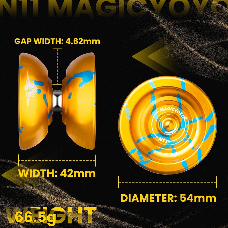 - ★Golden Splash Blue Professional Yoyo N11 for Intermediate, Expert, Advanced Players, it Designed to train fine motor skills and eye-hand coordination. It is not only for daily entertainment, but also for acrobatic performance with most entertaining fancy and It's best for advanced players in competition