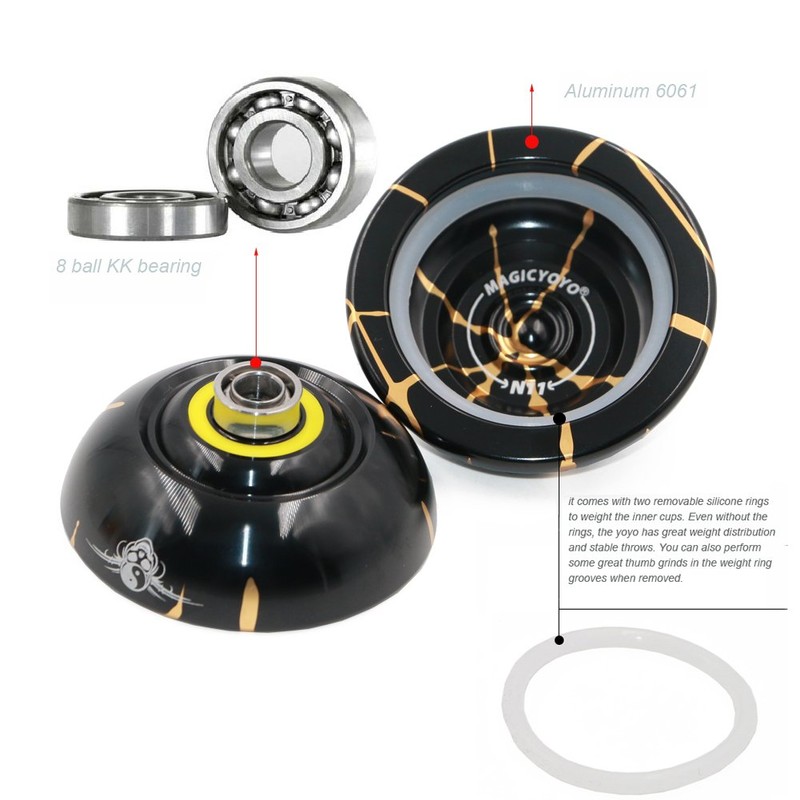 - 2, Premium Quality-- MAGICYOYO N11, Gold& Black, Metal Unresponsive Yoyos. Anodic oxidation finish, ANTI-corrosive, good touch in hand