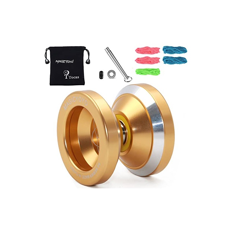 MAGICYOYO N8 Professional Responsive Yoyo with Unresponsive Yo-yo Bearing for Kids & Adults Beginners to Expert Yo-yo Tricks, 2 in 1 Yoyo Metal with Remover+ Bag+ 10 Yo Yo Strings Kit, Golden