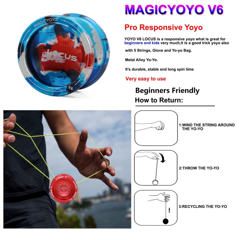 - 1. Professional yo-yo responsive -- Magic Yoyo V6, red & blue & silver, be a responsive yo-yo, easy to return, the kids beginner is easy to start the yoyo trick on it