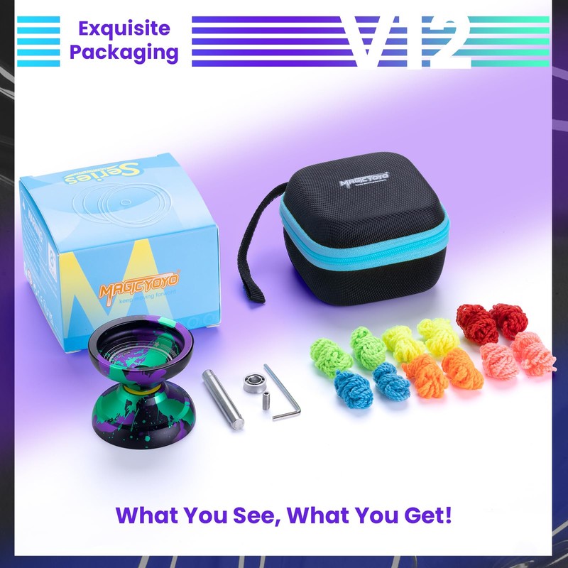MAGICYOYO V12 Finger Spin Yoyo - Professional Responsive & Unresponsive Yoyo for Kids & Adults, 12 Strings & Accessory Kit - Black, Green, Purple