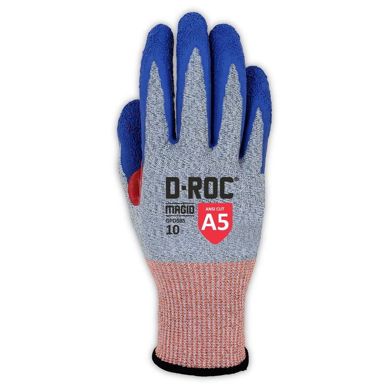 MAGID D - ROC 13 - Gauge Non - Marring Crinkle Latex Coated Cut Resistant Work Glove - Cut Level A5-10/XL, 12 Pairs
