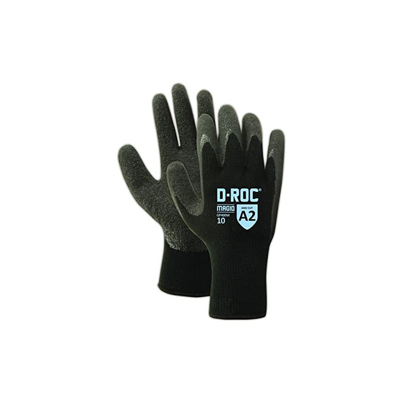 MAGID D-ROC ANSI A2 Thermal Latex Palm Coated Work Gloves, 1 Pair, GP400W