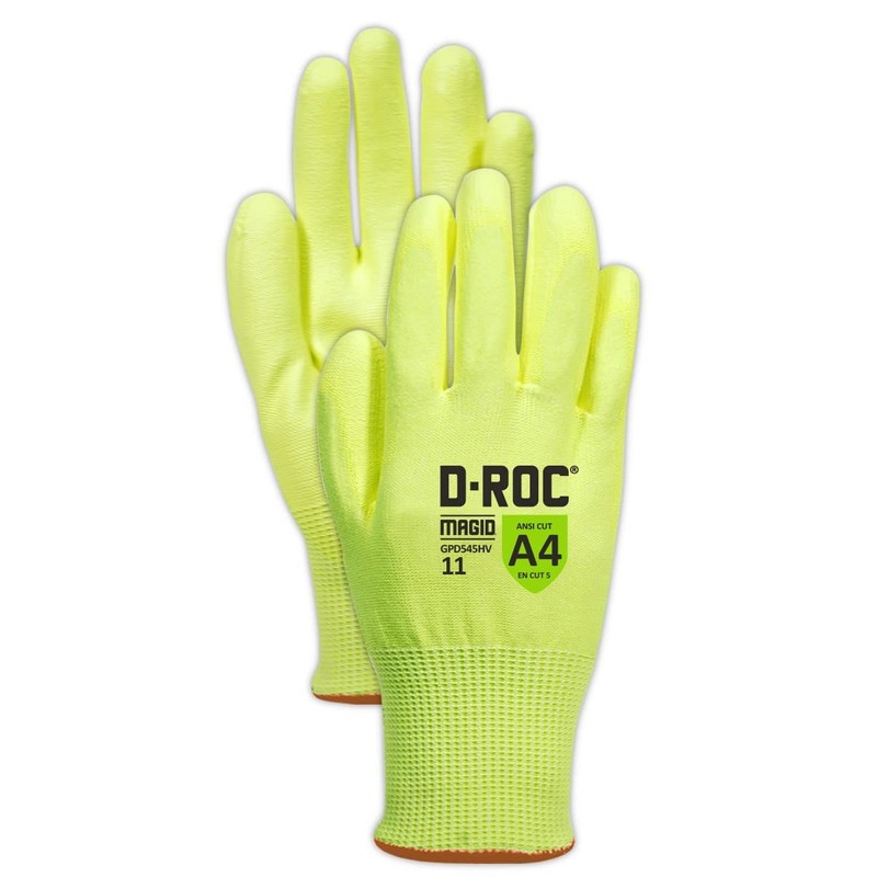 MAGID GPD545HV11 D-ROC HPPE Blend PU Palm Coated Gloves, Size, Hi-Viz Yellow ...