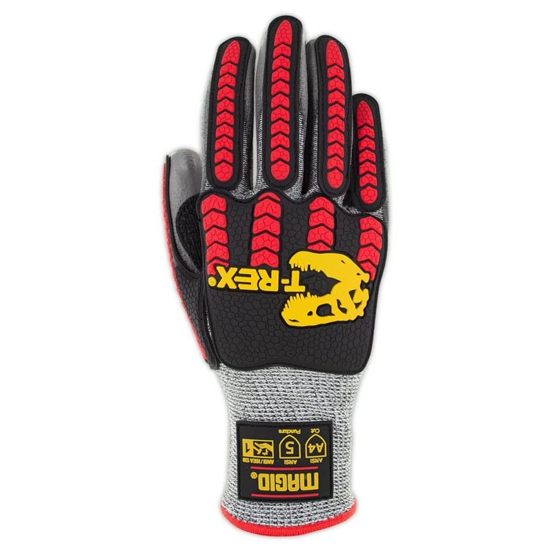 MAGID T-REX TRX442 Flex Series Lean Lightweight Impact Gloves, 1 Pair, Polyurethane Palm Coated, Size 7/S, Salt & Pepper