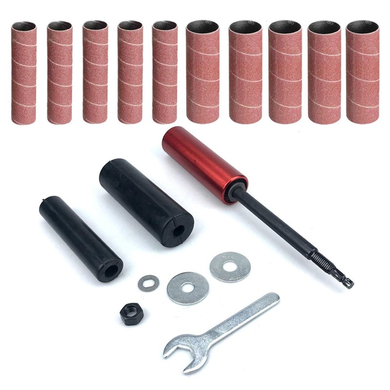 - Package Includes: 2 pieces rubber sanding drums for drill, 10 pieces sandpaper sleeves set, spindle sander adapter, and 1 wrench tool.