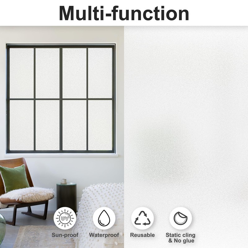 - MULTI-SCENARIO USAGE:With the window frosting film, say goodbye to those heavy curtains or blinds.Our frosted window film can be widely applied to many smooth and flat surfaces and multiple scenarios,such as bedrooms, living rooms, offices, bathrooms, hotels, etc.Get the privacy but still softened light.Note: Not applicable to uneven and rough glass surfaces.