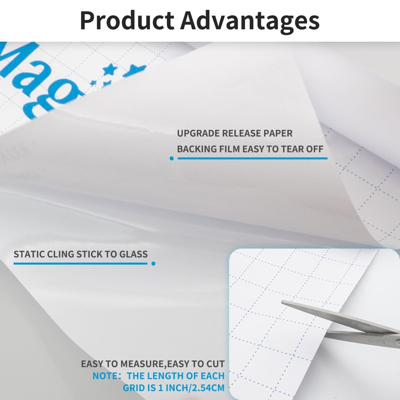 - UPGRADE BACK PROTECTIVE FILM & GRID LINE EASY TO INSTALL:The protective film on most frosted window films is difficult to peel off, so we have newly upgraded the protective film,which is made of white release paper, which can be peeled off in 1s, no other auxiliary stickers are needed to tear off, saving time and effort. Frosted glass film also adds grid line design , each grid length is 1inch, which provides accurate and convenient measurement for cutting. Make it easy for customers to use.