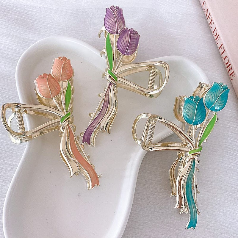 - Tulip hair claw suitable for any important occasion that you want to be more charming and attractive. You can send it to your girlfriend, sister, wife or mother as the gift of birthday, Christmas, Halloween, Thanksgiving Day.