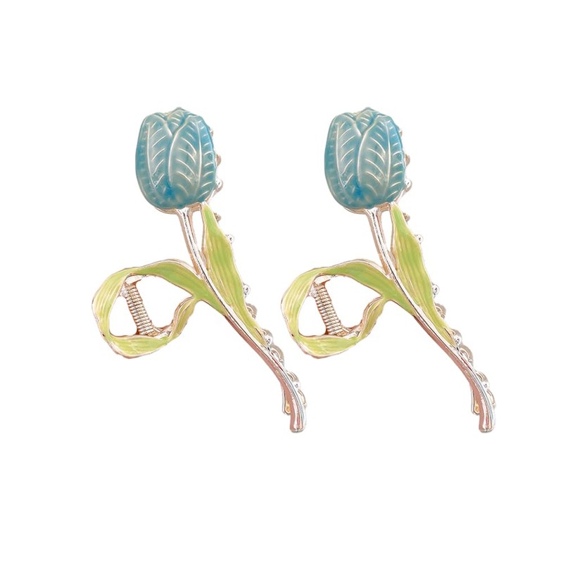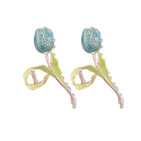 Magik 1~2 Pack Tulip Floral Enamel Large Metal Hair Claw Flower Blossom Hair Clips (2 Pack, 1 Tulip, Blue)