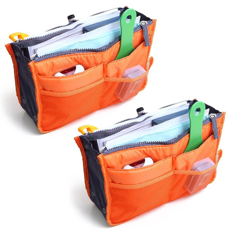 Magik 2 Pack Travel Insert Handbag Purse Large Liner Organizer Tidy Bags Expandable 13 Pocket Handbag Insert Purse Organizer with Handles (Orange.)
