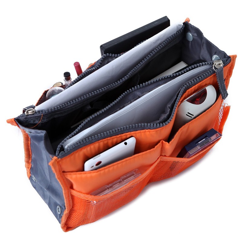 This organizer bag has 13 small to large compartments/pouches you can store your things, with two zipper pouch for your important things. You can you use to store your first aid kit, slip it into your main bag for extra storage, use it as a small overnight travel bag or anything else. With the built-in handles, it's easy for you to carry anywhere. Feature: 13 compartments/pouches w/ two (2) zippers Built-in handles Made of durable and premium quality nylon 100% brand new, 3rd party product
