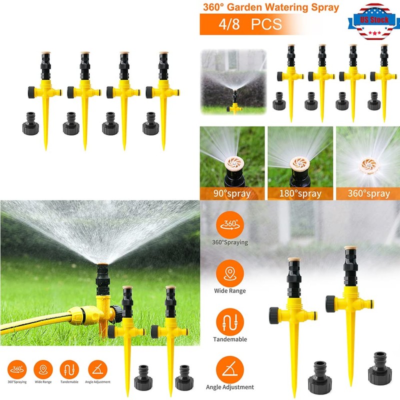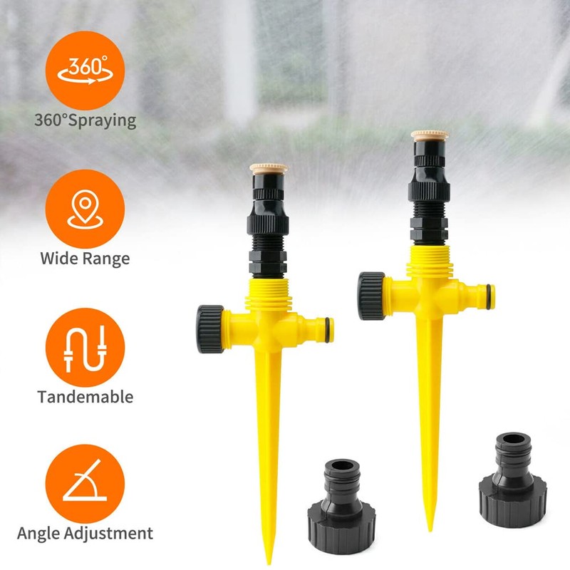 - Multiple Uses——360° Rotation Auto Irrigation System Garden Lawn Sprinkler Patio, Super sprinklers, lawn irrigation, garden watering, 360-degree rotation. These lawn sprinkler heads can be used as a fun sprinkler set for kids to play and cool down on hot and sunny days.