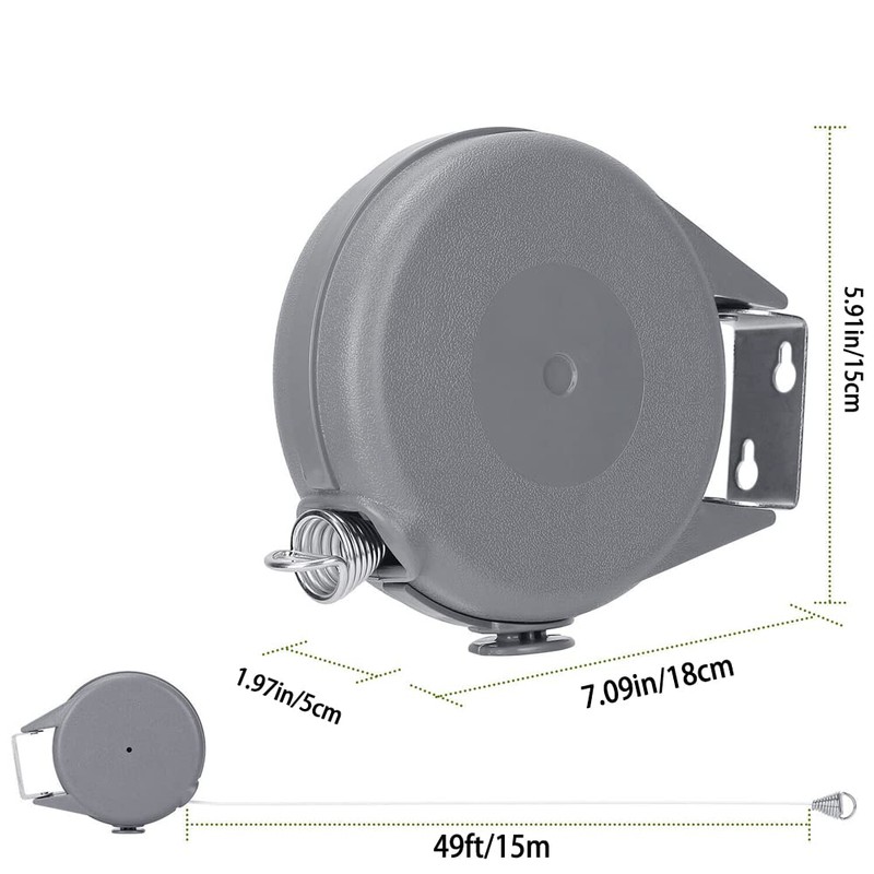 - 49FT Long & Easy Installation:49 Feet long clothes line enables you to hang clothes of all your family members. Just wall mount the line in minutes and use the lock button to fix the rope any length you want.