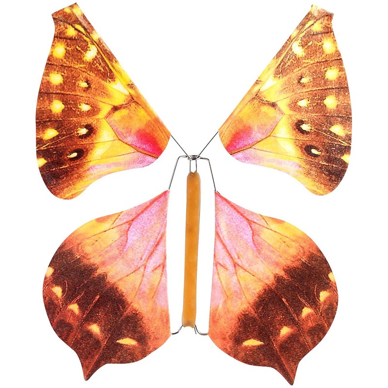 - 12 giant butterflies made of sturdy paper and wire in different colours and patterns. Real nasty wing span: 10.5 cm, length: 11.5 cm, weighs approx. 2 g