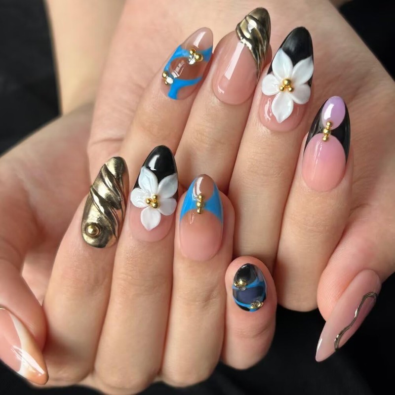 - Nail Art Design: This fake nails shape is hand-painted, and the color and pattern are polished with gel, rather than printed with ink. Fake nails can be completed in 5 minutes, achieving the same effect as offline nail salons with less time and money
