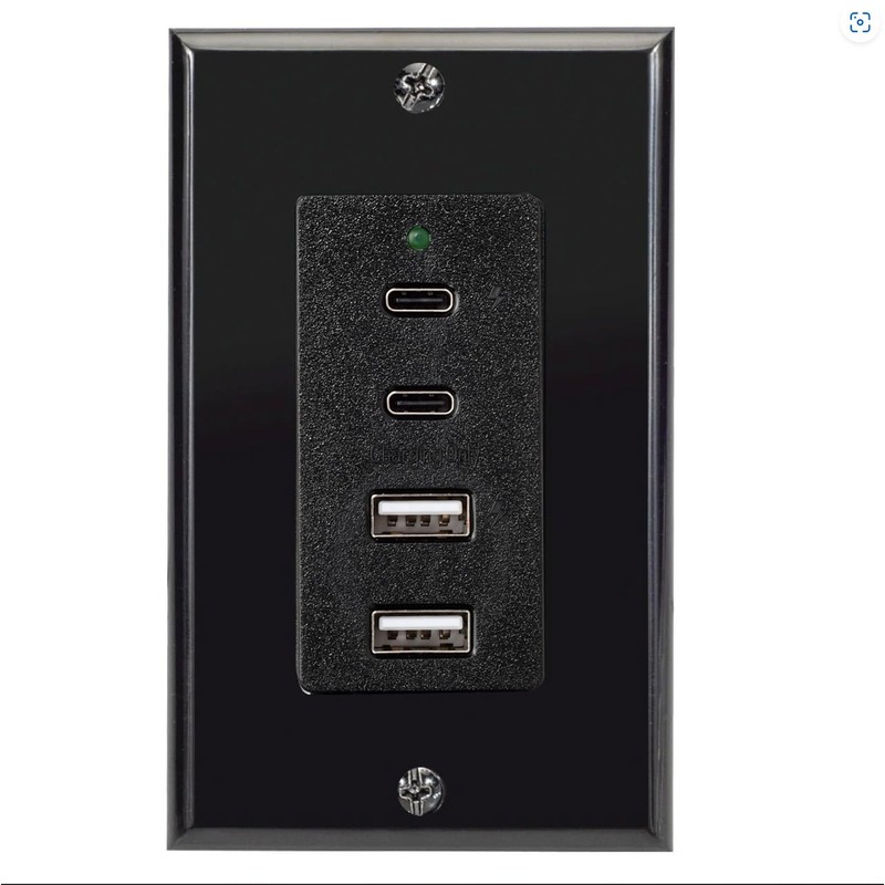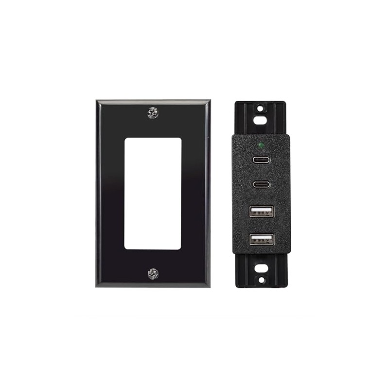 Magnadyne Wall Mount USB-C & USB-A Charging Ports for RV & Vehicle Use, New Model, Includes Wall Plate (Black)