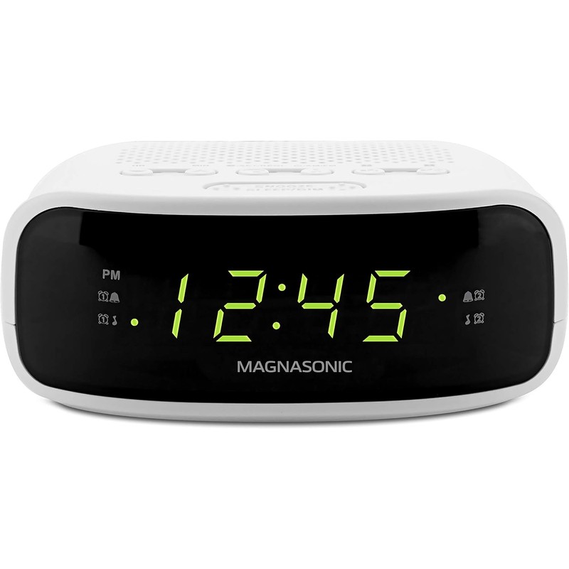 Magnasonic Digital AM/FM Clock Radio with Battery Backup, Dual Alarm, Sleep & Snooze Functions, Display Dimming Option,White (EAAC201)