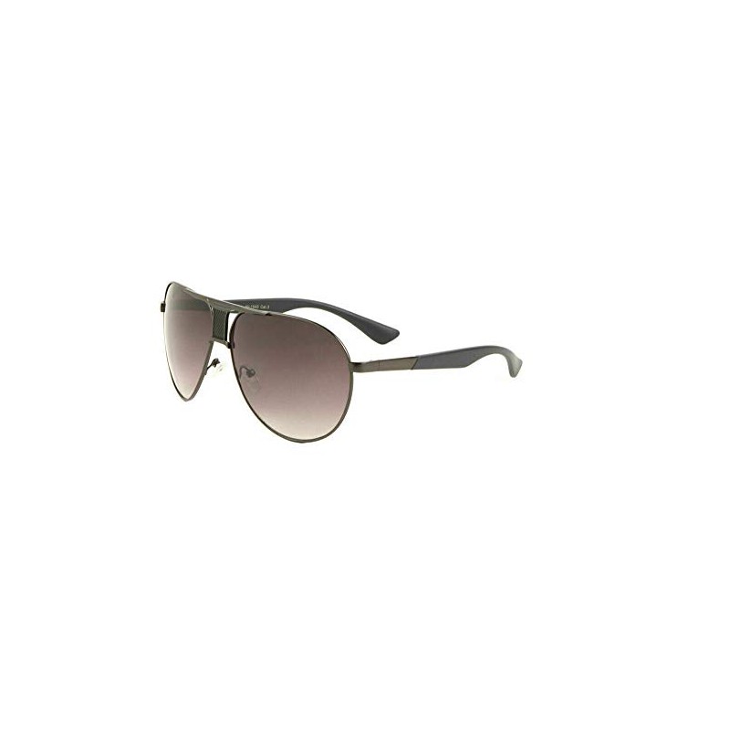 Magnate Flat Top Luxury Turbo Aviator Sunglasses (Gunmetal & Blue Frame, Black Gradient Lenses)