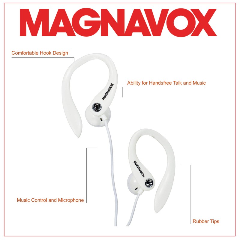 Magnavox White Earhook Headphones with Microphone MHP4854WT