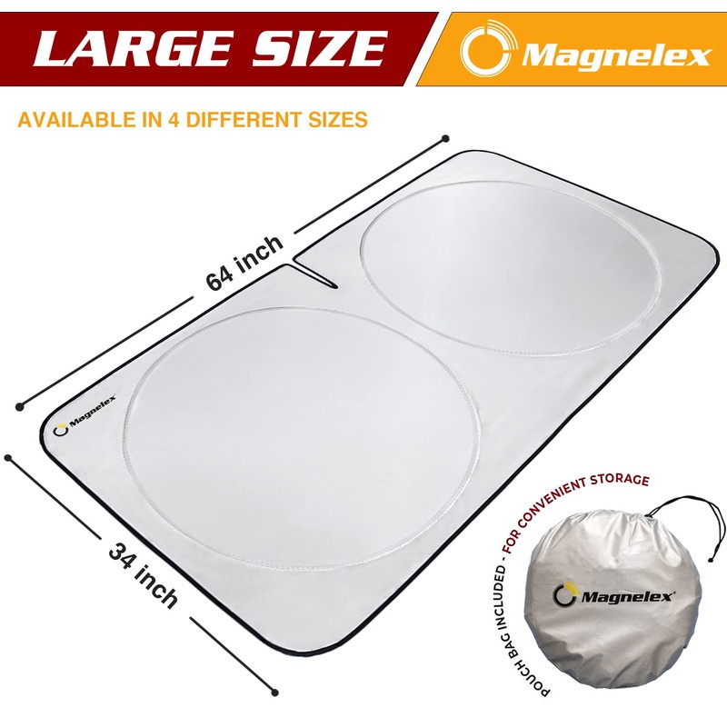 - Interrior Sun Protection; Minimize heat build up in your auto interior with a Magnelex Windshield Sunshade. This reflective car sun shade protects your vehicle's dashboard, seats, steering wheel, and LCD devices from heat by re-directing UV rays while your vehicle is parked